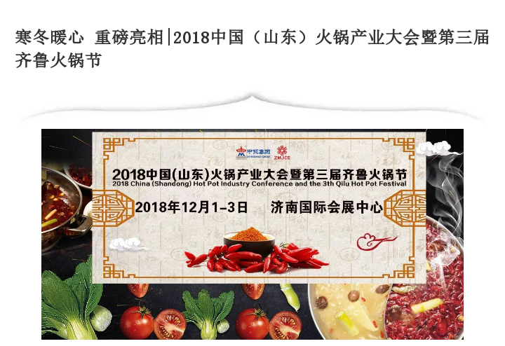 寒冬暖心 重磅亮相|2018中國(山東)火鍋產(chǎn)業(yè)大會暨第三屆齊魯火鍋節(jié)