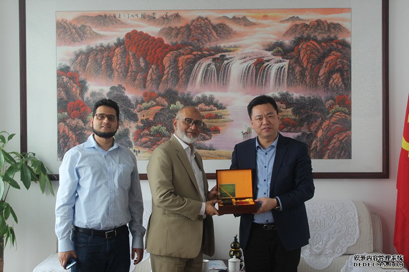 巴基斯坦最大的會展公司Ecmmerce Gateway Pakistan(pvt)Ltd.董事長Dr.Khursheed Nizam先生一行蒞臨中貿(mào)集團濟南公司參觀交流,就今后雙方開展合作進行了深入的探討,中貿(mào)集團董事長杜磊以及張濤,龐國臣,王健等同志陪同。